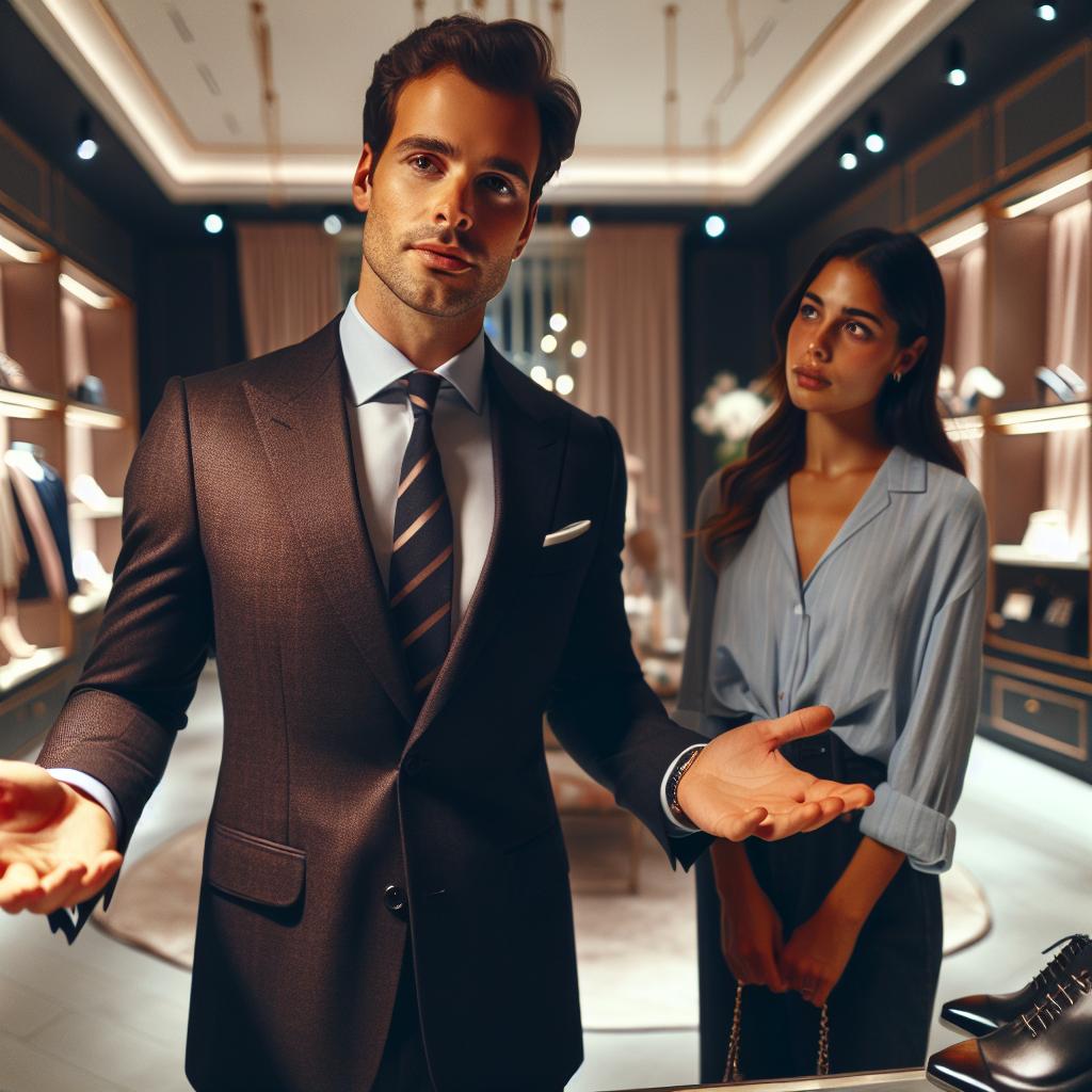 ​Несмотря на то, что бутик был дорогой, консультанты явно видели в этом мужчине выгодного клиента и покорно подчинялись.​