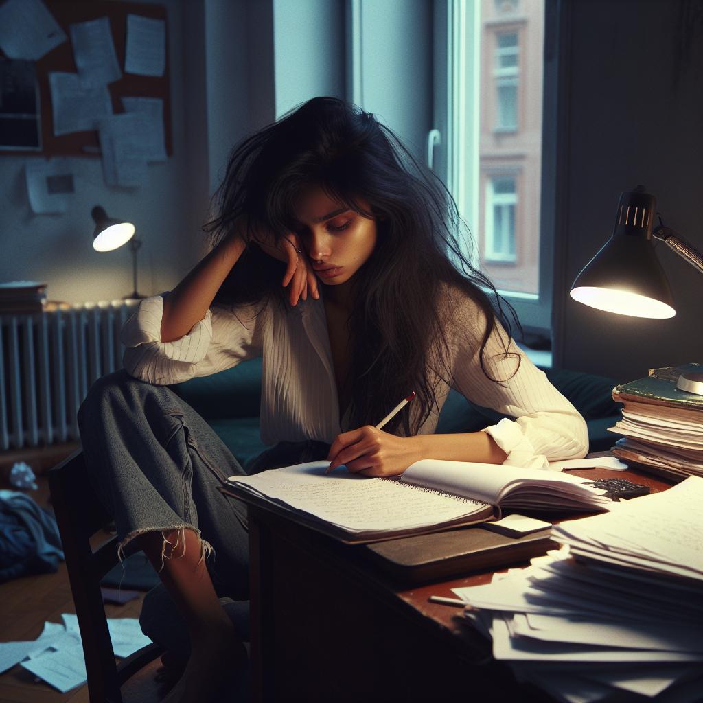 Сонная Аленка сидела за тетрадками.
