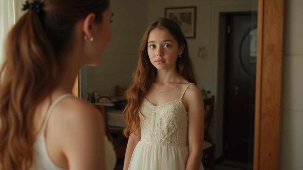 Таня еще раз взглянула в зеркало. На нее смотрела незнакомая взрослая и красивая девушка в вечернем платье, с распущенными каштановыми волосами. Подведенные глаза смотрели прямо и смело.