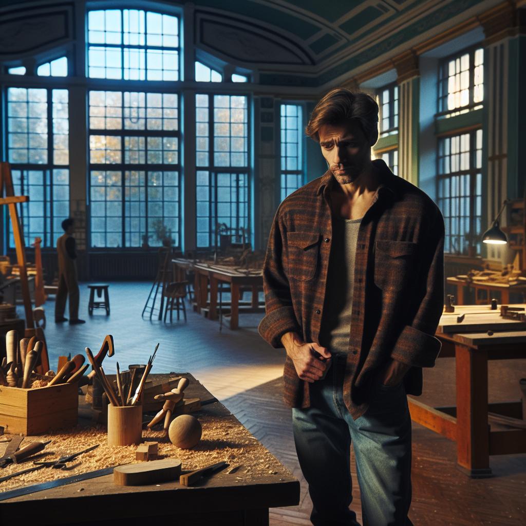 Трудно было даже представить его сидящим со штихелем в руках за вырезанием деревянной фигурки.
