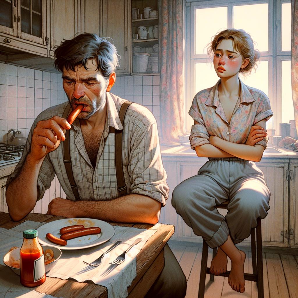 Николай Иванович сидел на кухне у дочери и ел сосиски. Подцеплял вилкой, смотрел задумчиво, макал в кетчуп и долго жевал, качая головой. Словно своим мыслям удивлялся.