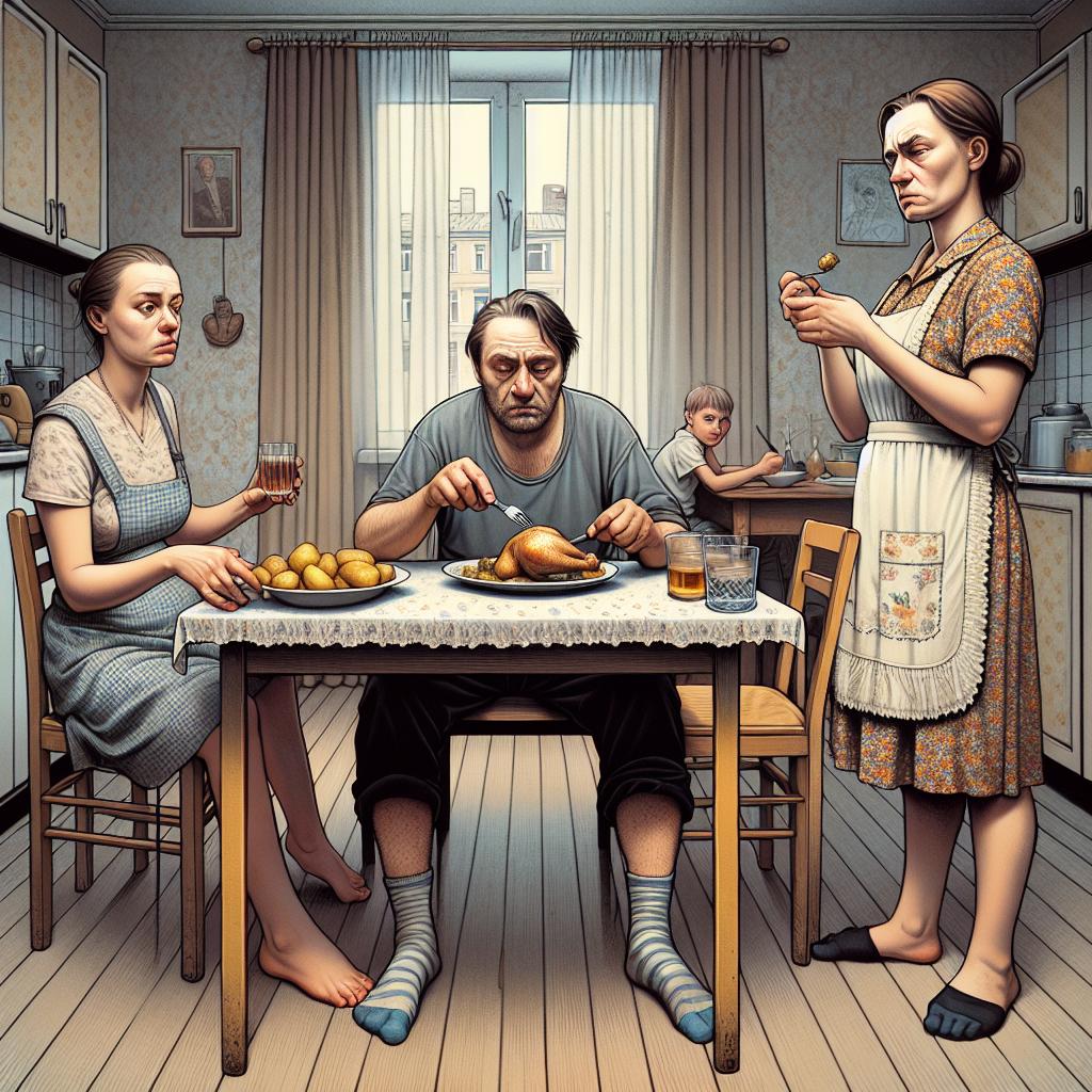 Прозвучало, как обвинение, что мол у курицы две ноги, а ты готов три сожрать! Рита потом ему объясняла, что мол мама искренне, от души предлагала, там целая сковородка голеней была пожарена. Но у Виктора на его тёщу, на Ирину Львовну, тогда осадочек остался.