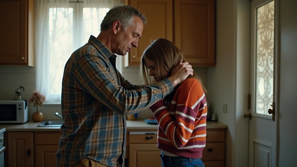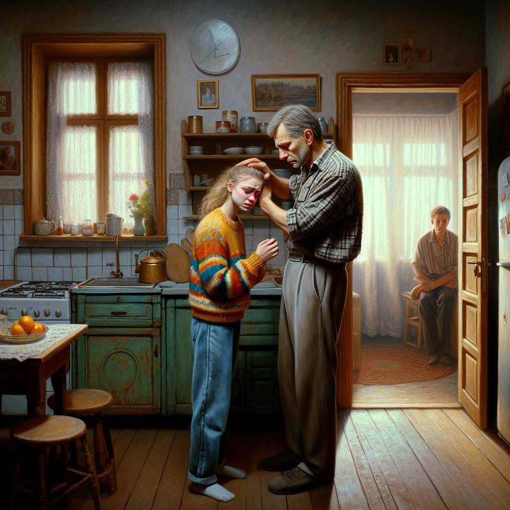 Но вдруг дверь квартиры распахнулась — влетела Маша, расстроенная, глаза на мокром месте. И сразу бросилась к отцу,