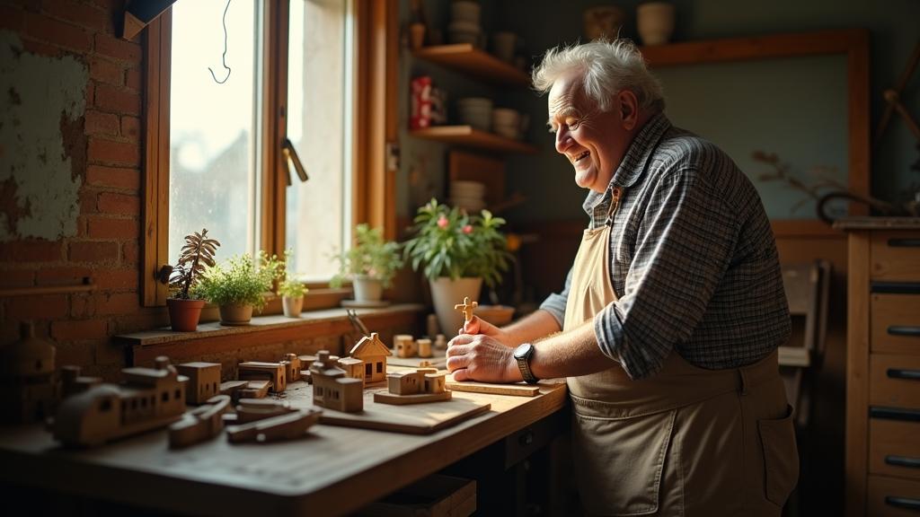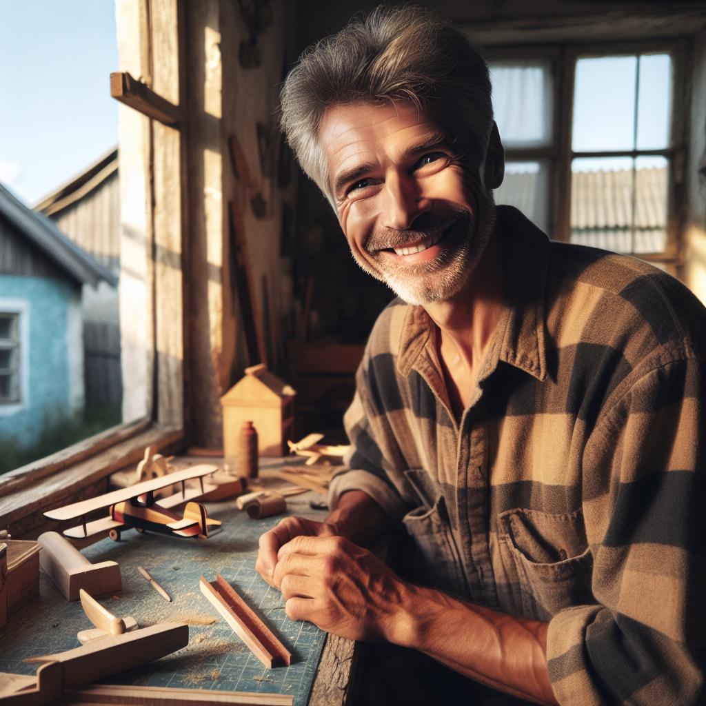 А то на гармошке целый день может играть, а то сидит, из дерева игрушки вырезает, то самолётики, то кораблики, или поезда на железной дороге. И ребятам бесплатно раздает! Ну дурачок, что с него взять.