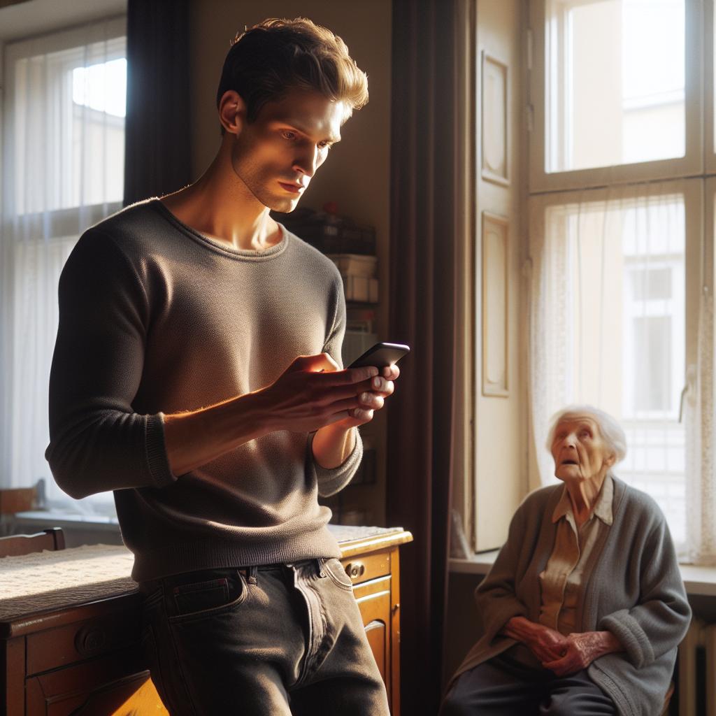 — Миленький ты мой, проходи, вот спасибо! А я ведь даже напугалась, когда моего Колю увезли, без него то я пропаду совсем! Он у меня и пенсию получает, и продукты на дом заказывает, его кто-то научил, всё на Коленьке. Да вот, не уберегла я его, старая квашня, сердце у него прихватило. Но говорят ему уже лучше, теперь вот думаю, как его из больницы забирать. Соседи то у нас тоже все старые, Коля мой как-то такси заказывал, а я боюсь. Ой, вы меня простите, я вас совсем заговорила, вам же наверное некогда! — старушка взяла дрожащей рукой пакет с продуктами и открыла,