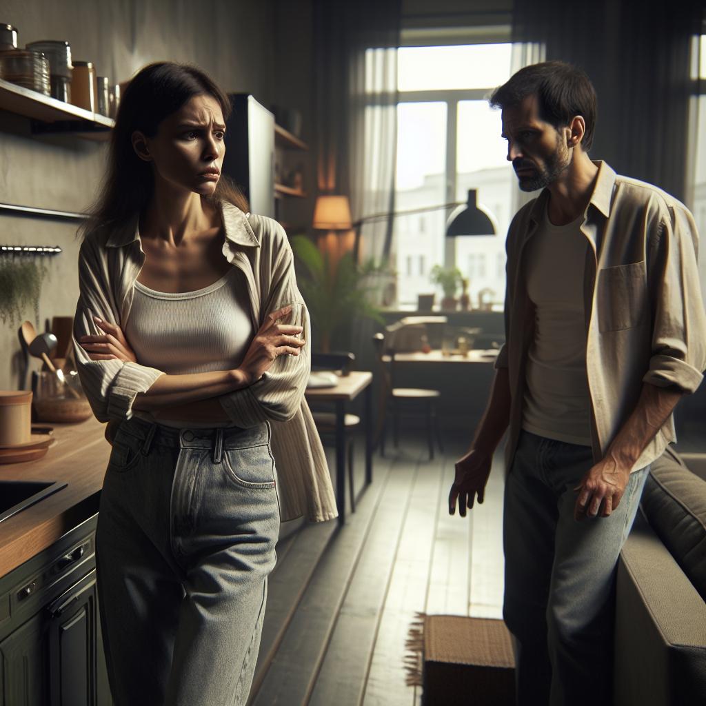 Супружеская пара крупно поссорилась и не разговаривала.