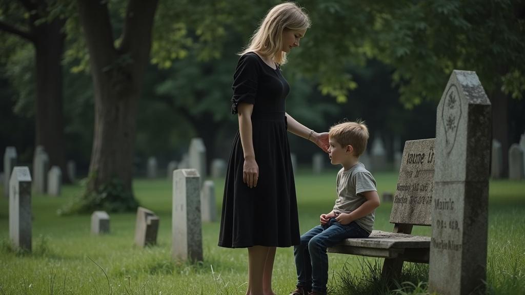 Женя вздрогнула. Она думала, что одна тут. Когда пришла на могилу к отцу, рядом никого не было. Она повернула голову на звук голоса, и увидела мальчика, лет 9— ти, в футболке и джинсах. Он сидел на соседней лавочке и болтал ногами.