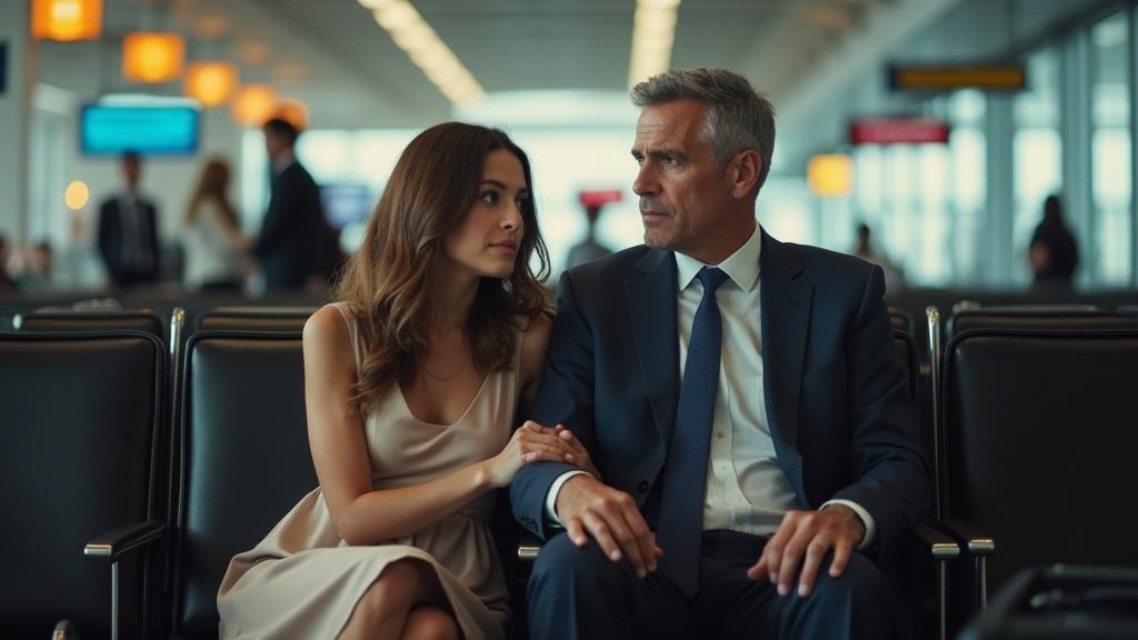 Полный зал пассажиров в столичном аэропорту. У окна, взявшись за руки, сидят отец и дочь. Оба заметно нервничают. Нина летит учиться в США, в самый престижный и дорогой вуз.
