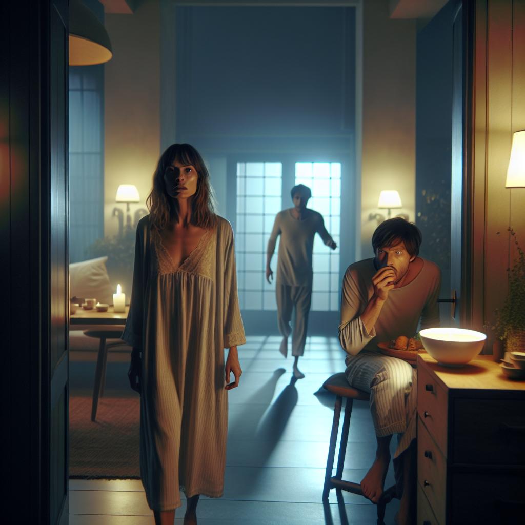 Егор дёрнулся и открыл глаза. Посмотрел на часы в телефоне. Три часа ночи. Зевая и чертыхаясь про себя, идёт открывать. Звонок невыносимо стучит по голове. Следом за мужем, накинув халат, спешит в коридор Анна.