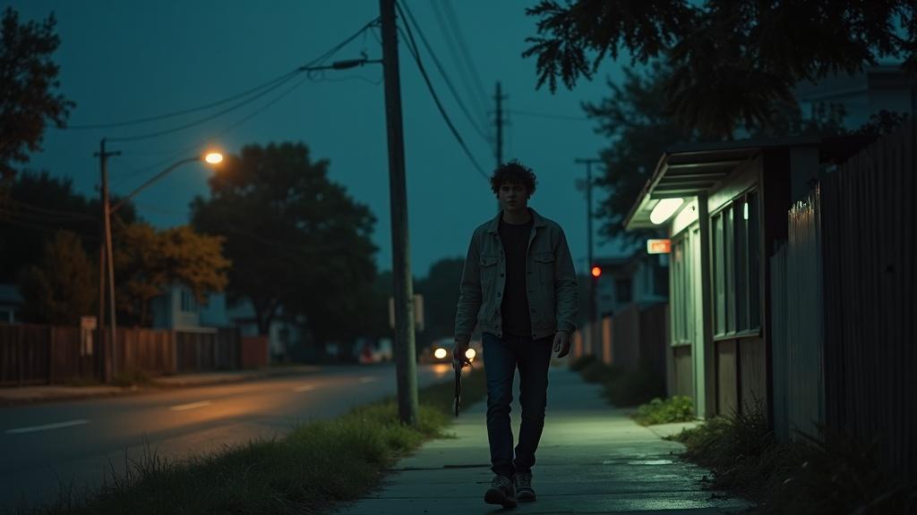 Полупустой автобус высадил его на тёмной остановке и скрылся. Ещё в автобусе Дмитрий пошарил в кармане мелочь и приготовился купить в киоске воды. Пить очень хочется. Темно. Киоск встретил его тёмными зарешеченными окнами. Закрыто. Расстроился. Справа за высоким забором стройка супермаркета. Оттуда едва-едва светит лампочка на бытовке. Она тускло освещает тропинку на деревянную лестницу. Там, за крутым подъёмом частный сектор с множеством улиц, где расположен и его дом.