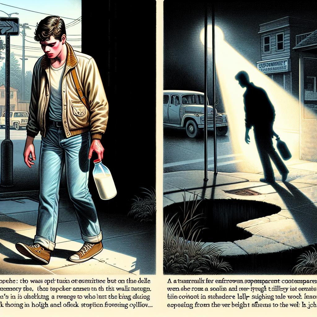 Очнулся от шума машины. Поднял голову вверх – светло. «Вот мать будет волноваться, что не ночевал», — думает он и осторожно шевелит пальцами, чтобы проверить, не сломана ли рука, — «Странно. Ничего не болит. Отлично». Осторожно поднимается наверх. Солнечный свет ослепил глаза и он зажмурился. Минуту стоит, привыкая к свету. Вылез.