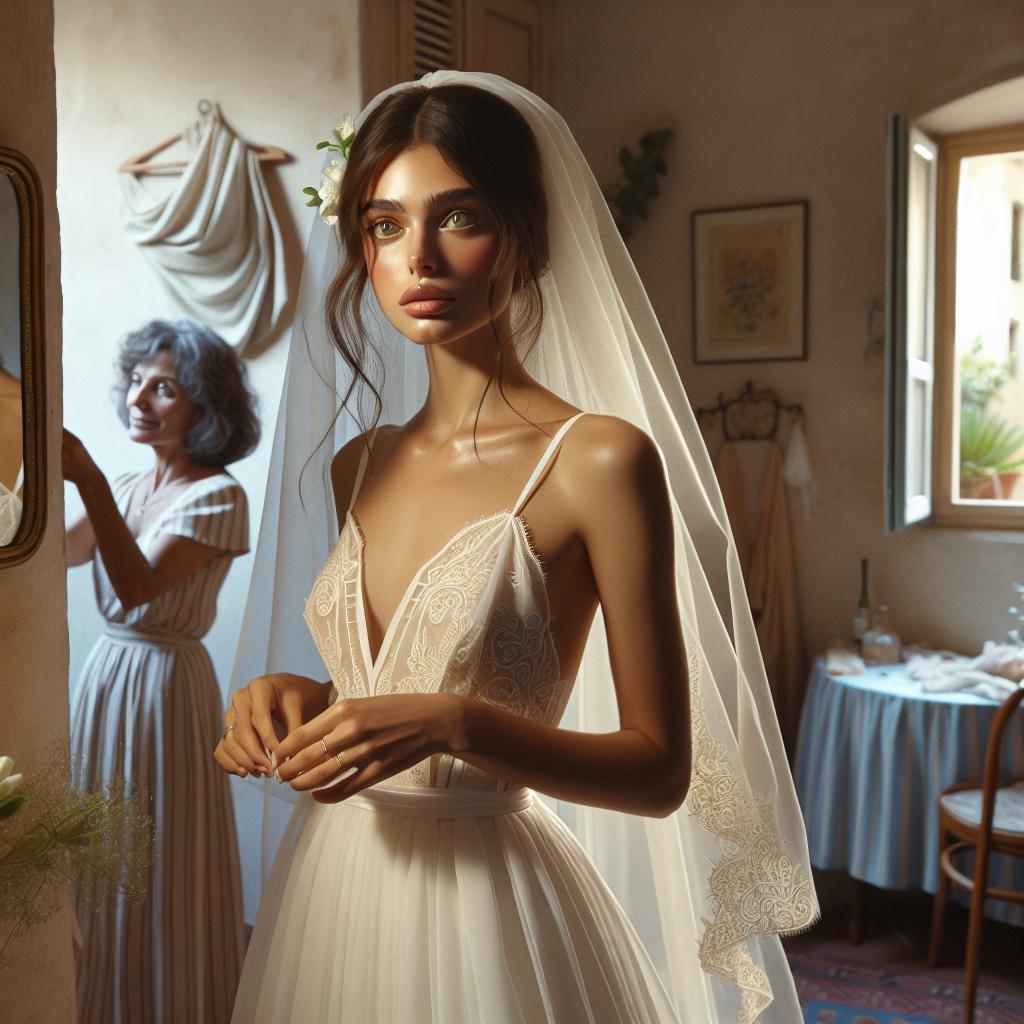 — Минуту, сейчас заканчиваю, — строго отрезала она. Улыбаясь, оглядывая невесту, отходит в сторону, — Всё! Шедевр!