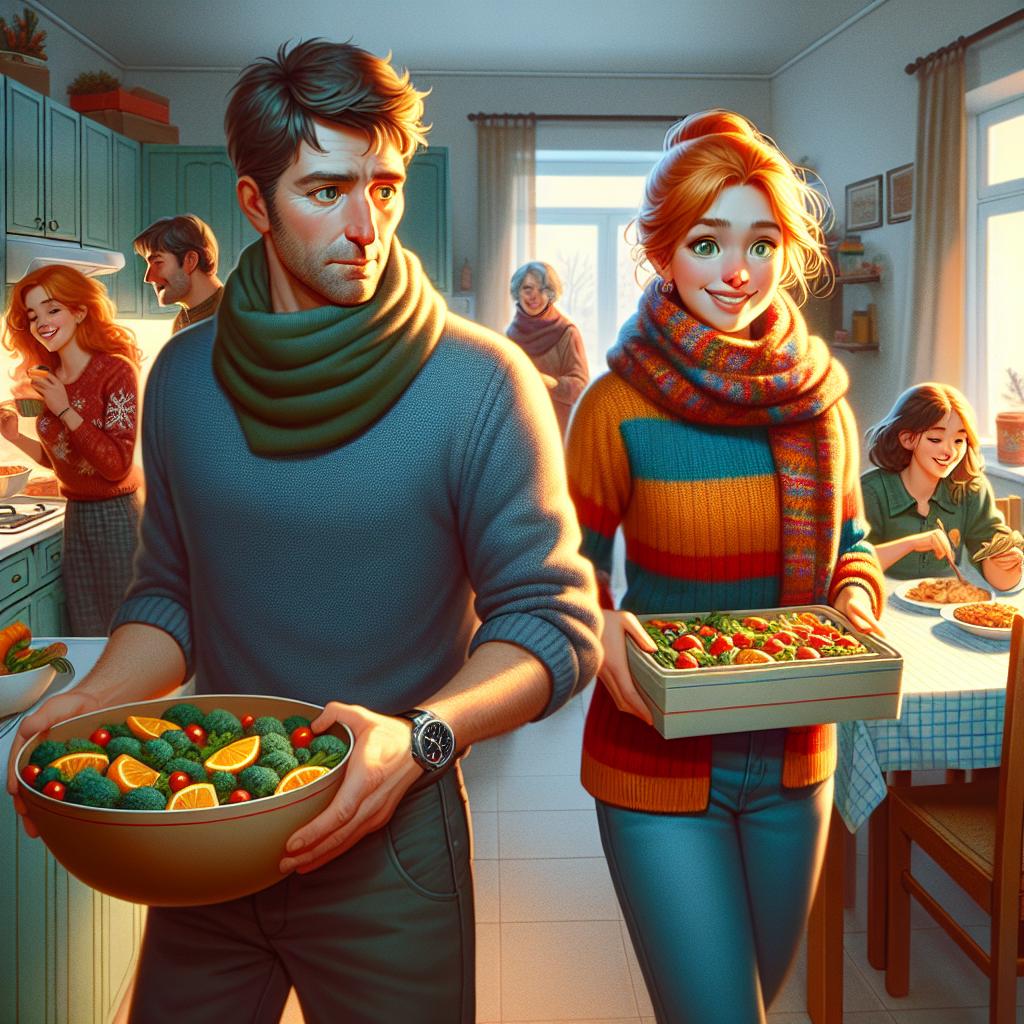 Она протянула миски с салатами и взяла коробку у дочери. Гости разделись и прошли в зал.