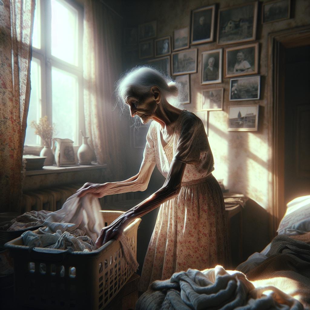 Так думает старуха, разбирая сундук, кидая вещи в три разные кучи.