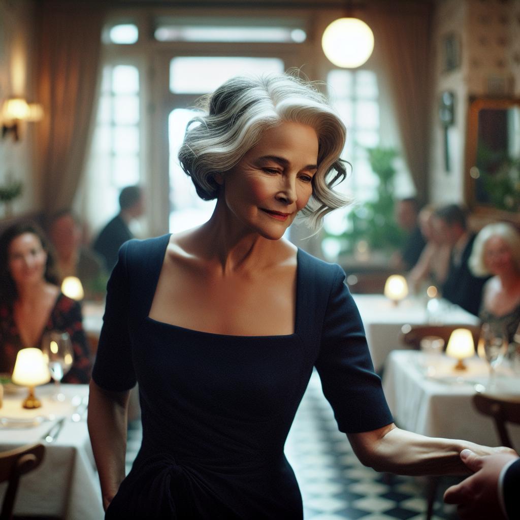 Наташа решила тоже поехать. Вот стоит теперь, смотрит в какую сторону ей идти, подоспевший официант проводил Наталью к столику.