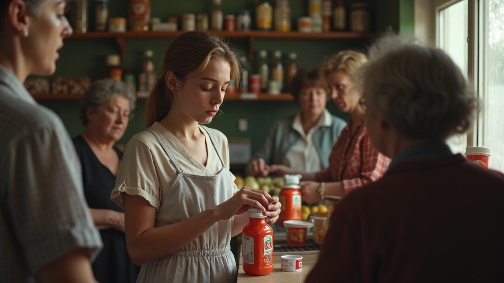 Девушка купила баночку томатной пасты, прижала к себе и не замечая никого, счастливая, пошла домой.