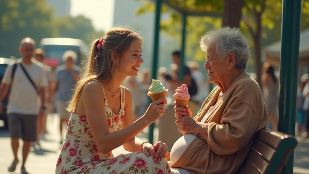 — Так хочется мороженого, а денег у меня только на обратный билет. Галя пошла к ларьку, и вернулась с мороженым. Пожилая женщина смутилась.