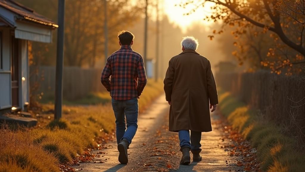По просёлочной дороге, окружённой густым кустарником, сгорбившись, идёт старик, шаркая кирзовыми сапогами. Седой, хмурый, утомлённый жизнью. Рядом бодро вышагивает молодой парень, не смотря на тяжёлую дорожную сумку на плече. Семён втягивает носом воздух — чистый, прозрачный, как родниковая вода. После шумного, задымленного города, здесь просто рай. Он широко улыбается. Хорошо.