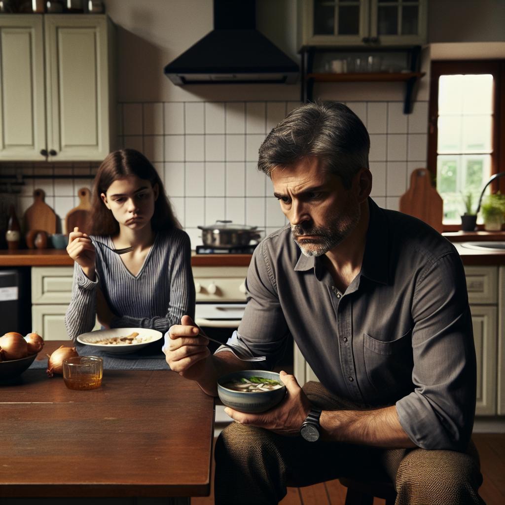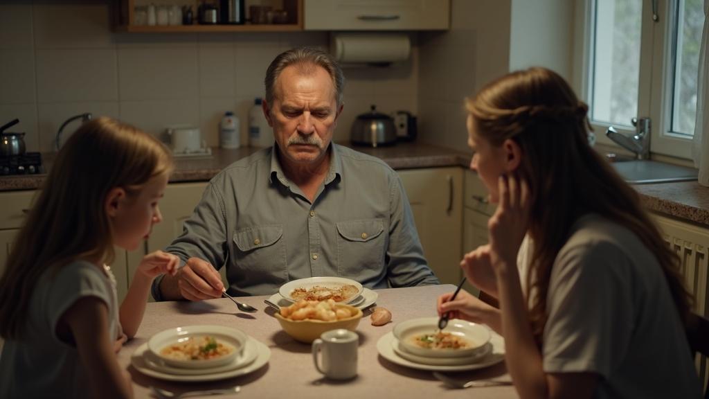 Осенний вечер в квартире Акуловых. За столом на кухне ужинает семья. Валерий недавно вернулся с работы, а его жена Алла, что работает в парикмахерской посменно сегодня выходная. Пятнадцатилетняя дочь Таня ковыряет, выкладывая на края тарелки лук из супа.