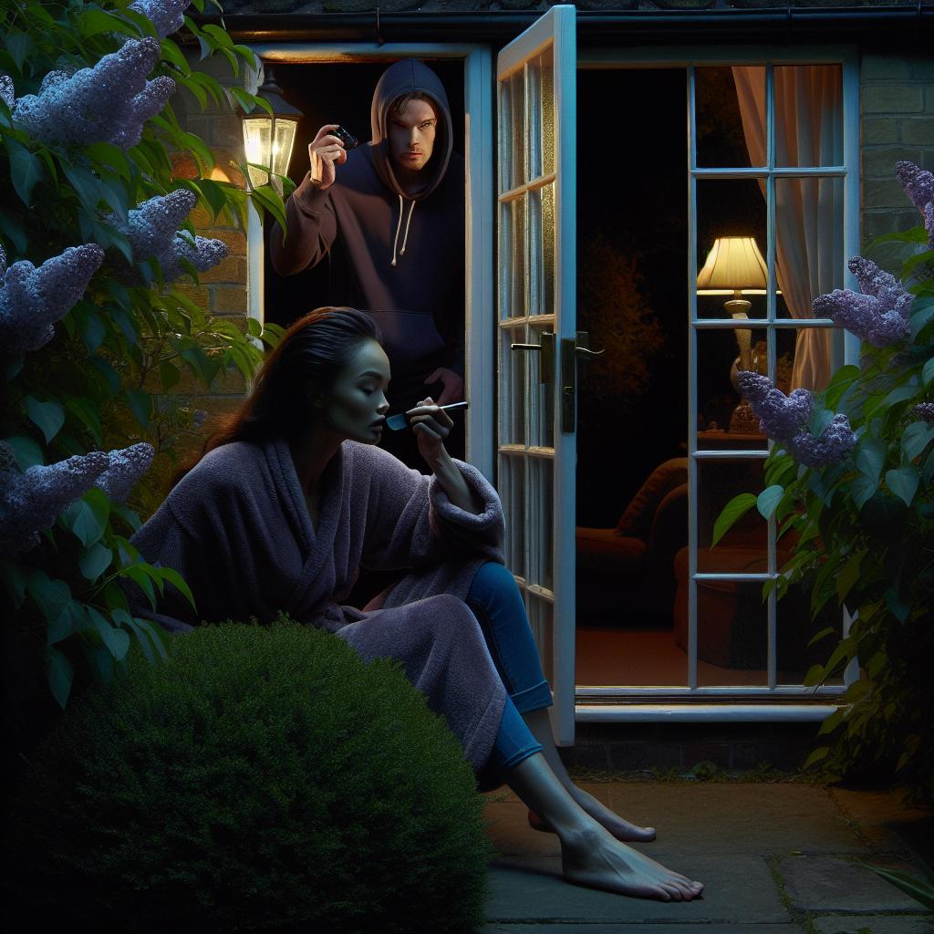 Летний вечер. Темно. Во дворе частного дома за кустами сирени прячется мужчина. Он заглядывает в окно. Там перед сном у зеркала расчёсывает волосы молодая женщина.