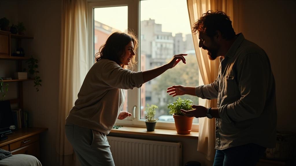 Но супруга уже схватила горшок и швырнула в окно.