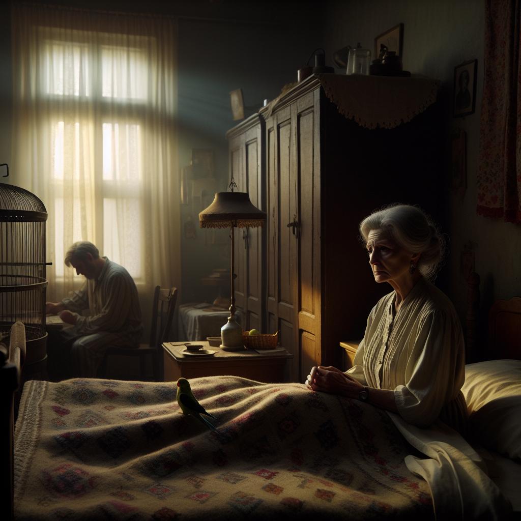 Валентина Петровна проснулась затемно — тревожно, как бывало в молодости перед экзаменом или новым назначением. За окном медленно светлело, и в полосатых лучах, пробивавшихся сквозь занавески, проступали очертания комнаты: старый шкаф, попугайчик в покрытой клетке, кресло с вязаным пледом. Михаил Сергеевич, её муж, ещё спал, покачиваясь на боку и чуть посапывая. В кухне что-то стукнуло: видимо, кот спрыгнул с подоконника.