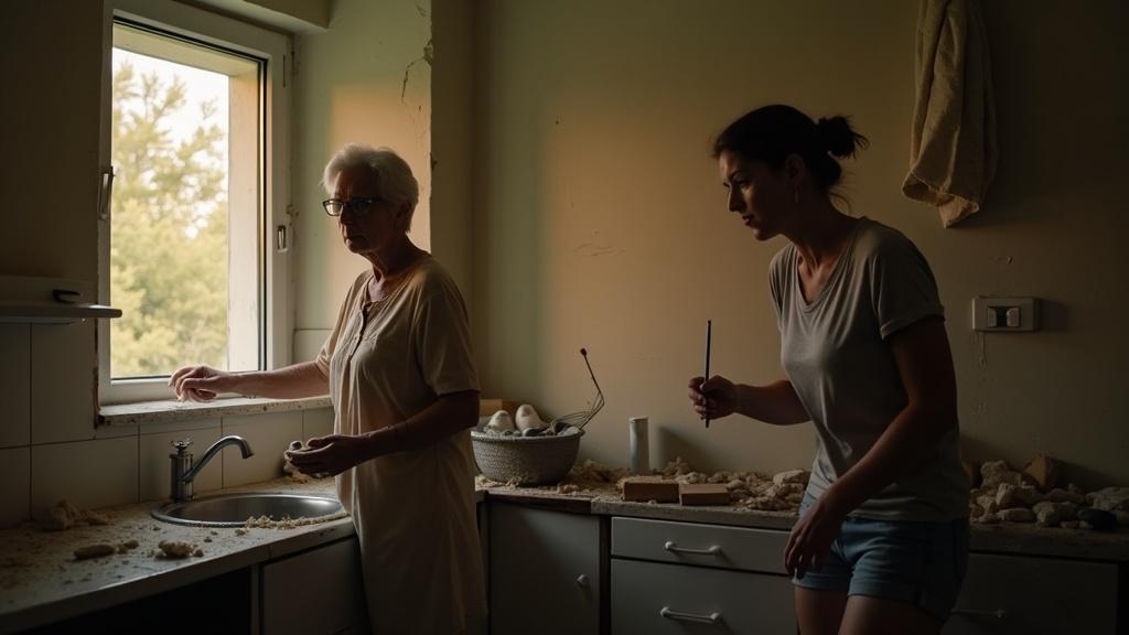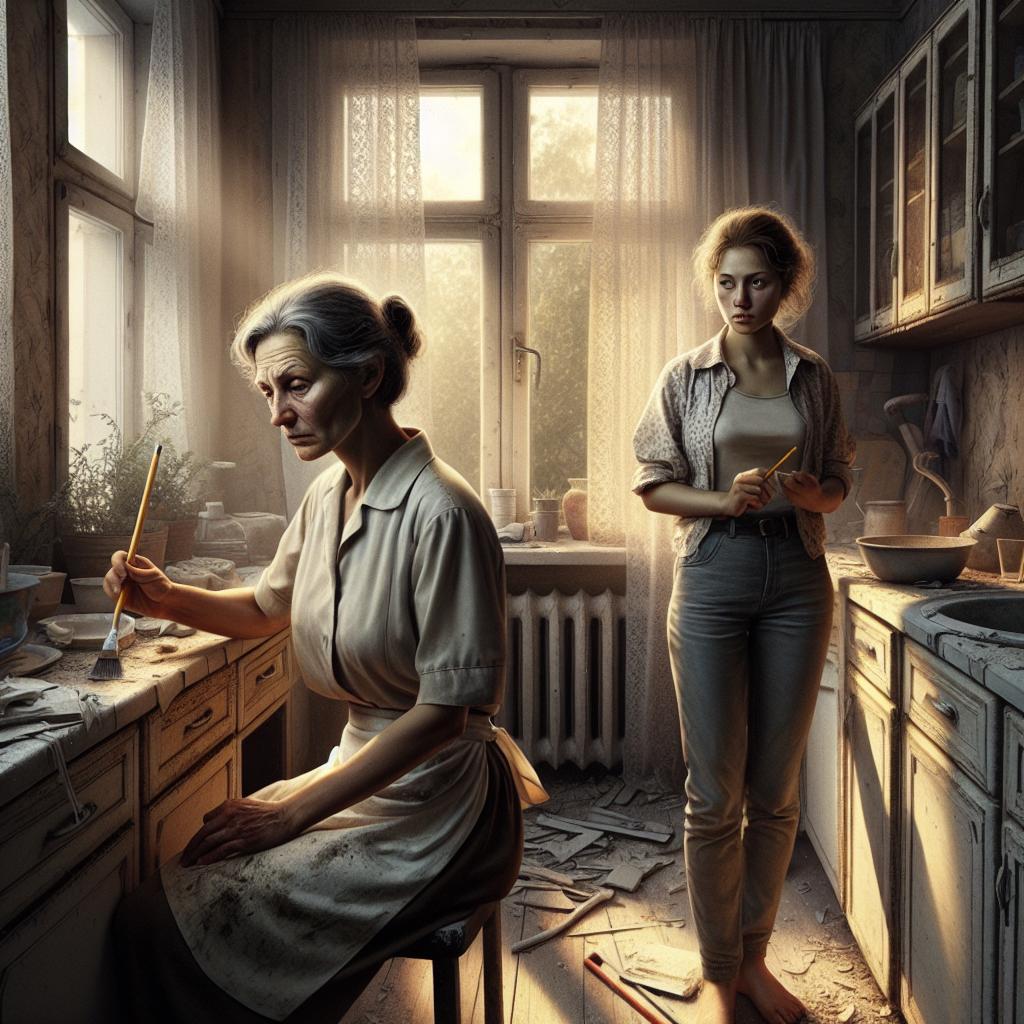 Ремонт шёл медленно: старая краска не хотела сходить с потолка, на стенах проступали пятна от прежних протечек. Мать упрямо держалась за привычное; дочь злилась на каждую мелочь — то мешки с мусором не вынесены вовремя, то кисти не промыты.