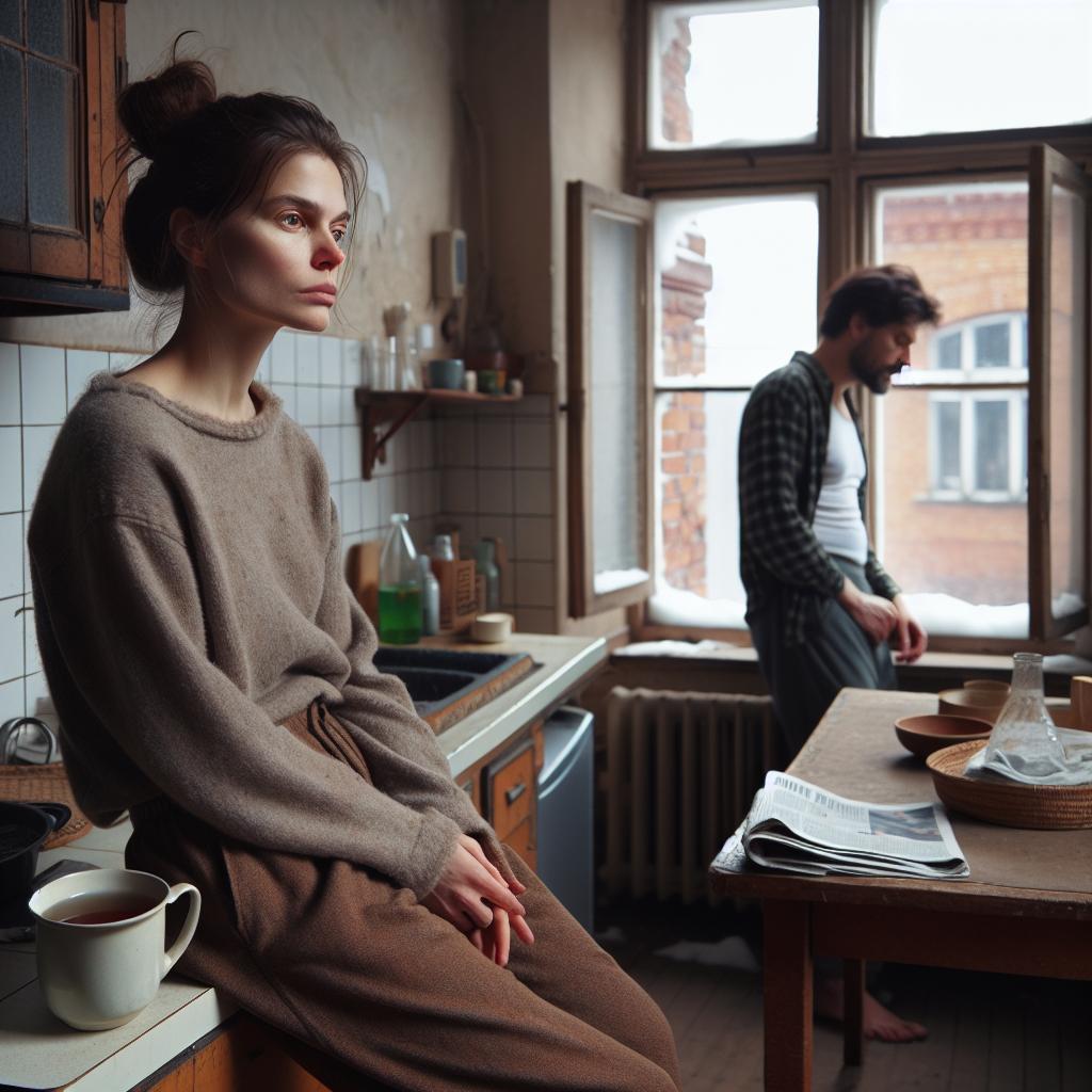 В маленькой кухне на третьем этаже старого кирпичного дома Наталья стояла у окна и смотрела на мартовскую кашу из снега и грязи во дворе. Чашка с остывающим чаем ждала её на столе, рядом лежала газета, которую муж, Игорь, оставил утром. В углу стола стояла фарфоровая сахарница — белая, с голубыми цветами и тонкой трещиной по боку, словно нитка по фарфору. Трещина появилась прошлой осенью: Наталья задела локтем, когда спешила к телефону. Сахарница уцелела, только стала уязвимее.