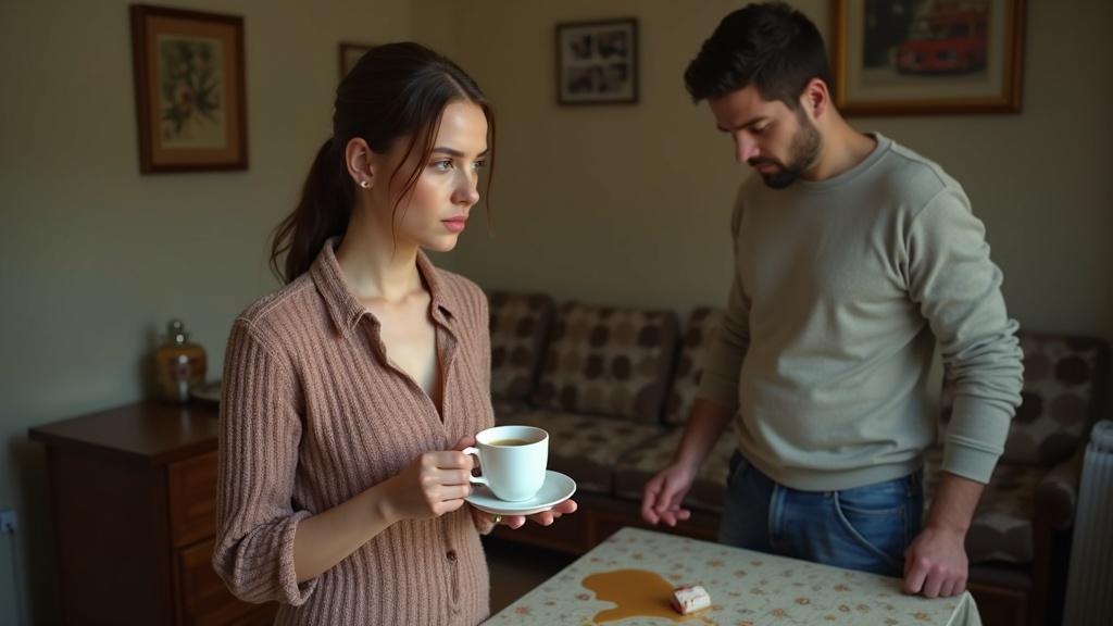 Катя застыла с чашкой кофе в руках. Горячая жидкость выплеснулась на новую скатерть — ту самую, которую они вместе выбирали для своей первой годовщины.