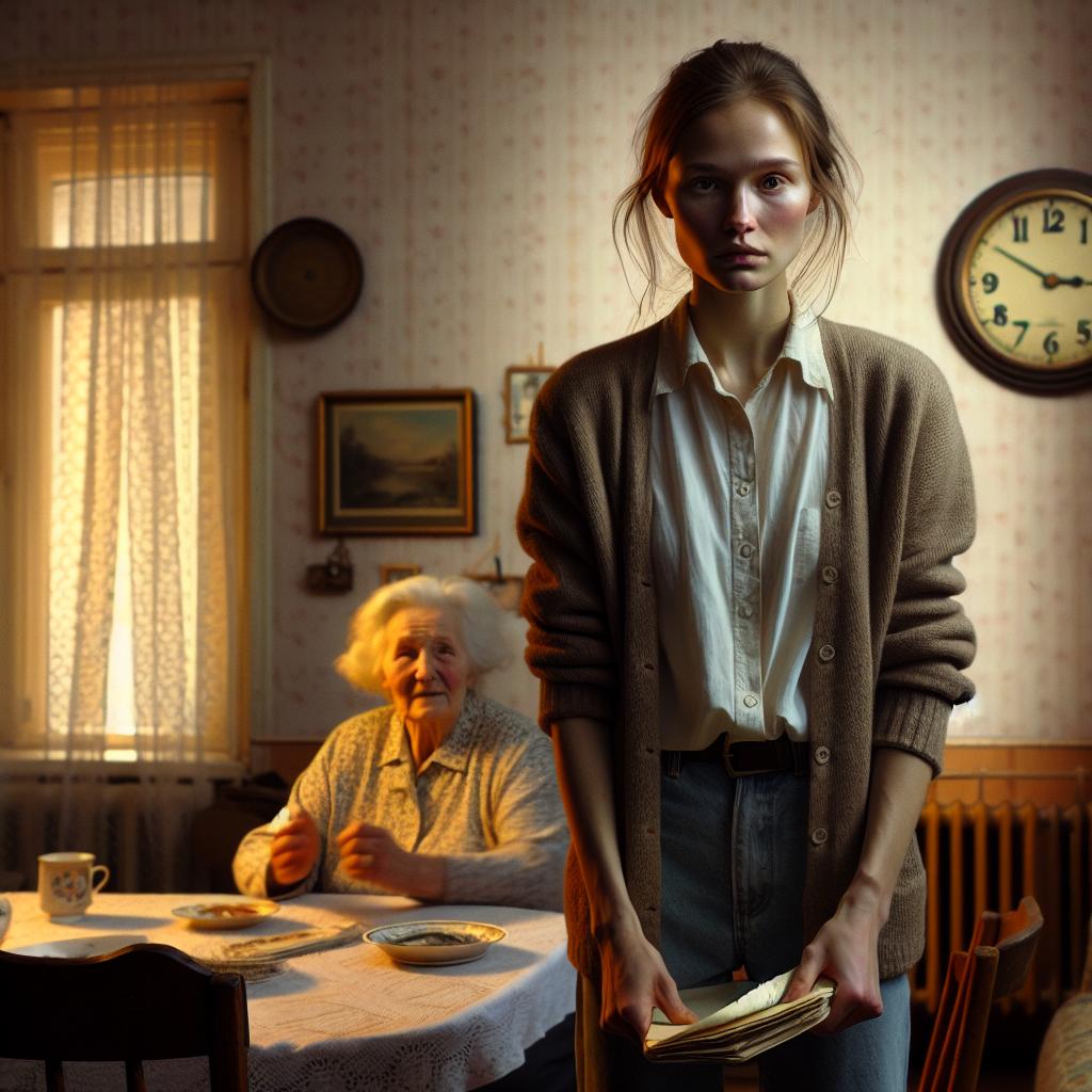 Галина Павловна медленно подняла глаза от вязания, и на её губах заиграла холодная улыбка. В гостиной повисла тяжёлая тишина, нарушаемая только тиканьем старинных настенных часов.