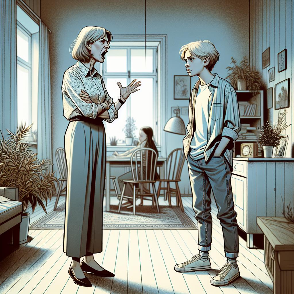 — Отстань от меня. Ты не можешь меня бить, мне уже пятнадцать! – визжала дочь, закрывая голову.