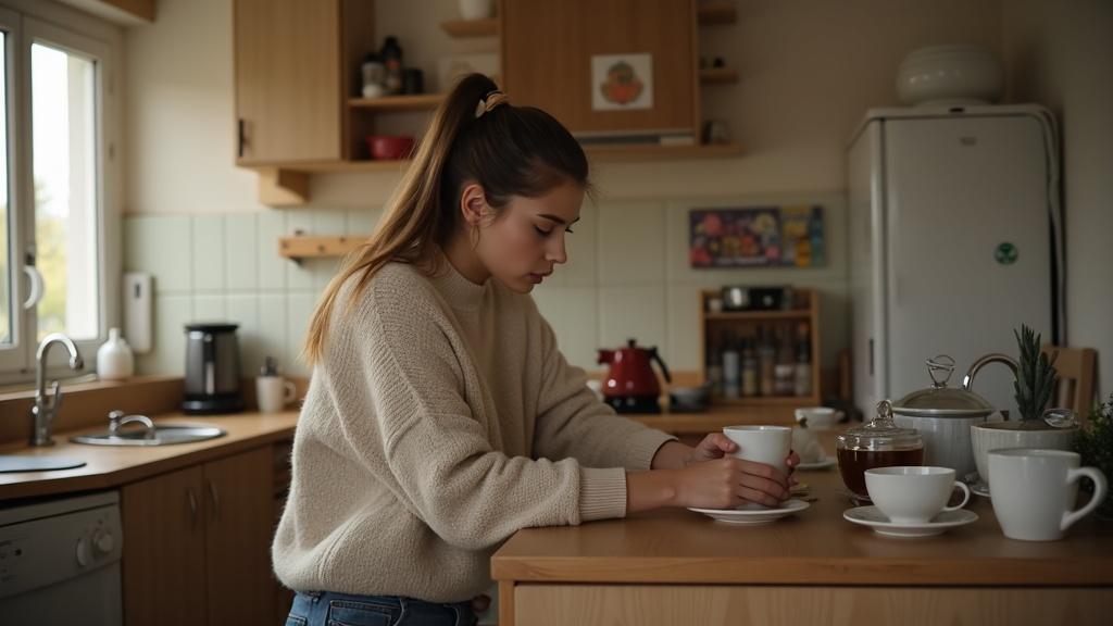 Мы сидели у меня на кухне. Секретничали. И погрузившись в проблему устройства личной жизни Гали, маму не заметили. А она вошла, прекрасная как принцесса, не смотря на свои сорок. Начала варить кофе, делать какие-то бутерброды. Всё это быстро, ловко, и обязательно красиво.