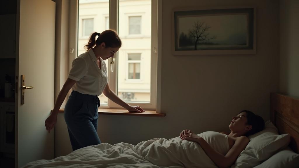 Не протирая глаз, чтобы сохранить в них остатки сна, женщина встала с кровати и, надев свой рабочий костюм поверх сорочки, дошла до прихожей.