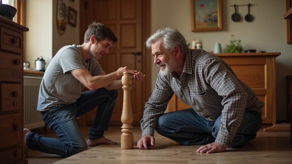 — Пап, подай балясину, пожалуйста, — попросил Макс, отмечая карандашом место сверления.