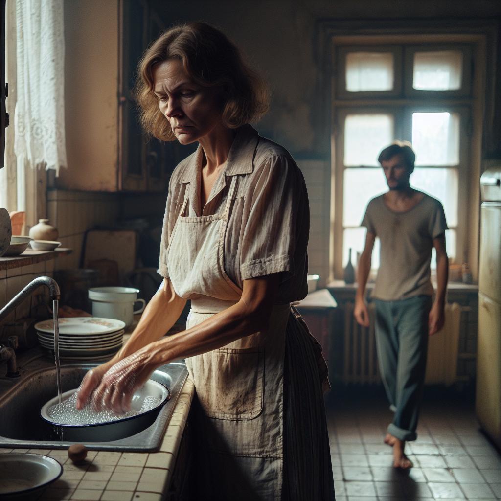 Когда утром Борис вышел из спальни в кухню, там уже у раковины стояла раздраженная Раиса Петровна, его мама, и тщательно мыла посуду, ставшуюся с вечера. Заметив появившегося сына, она со злобой в голосе сказал: