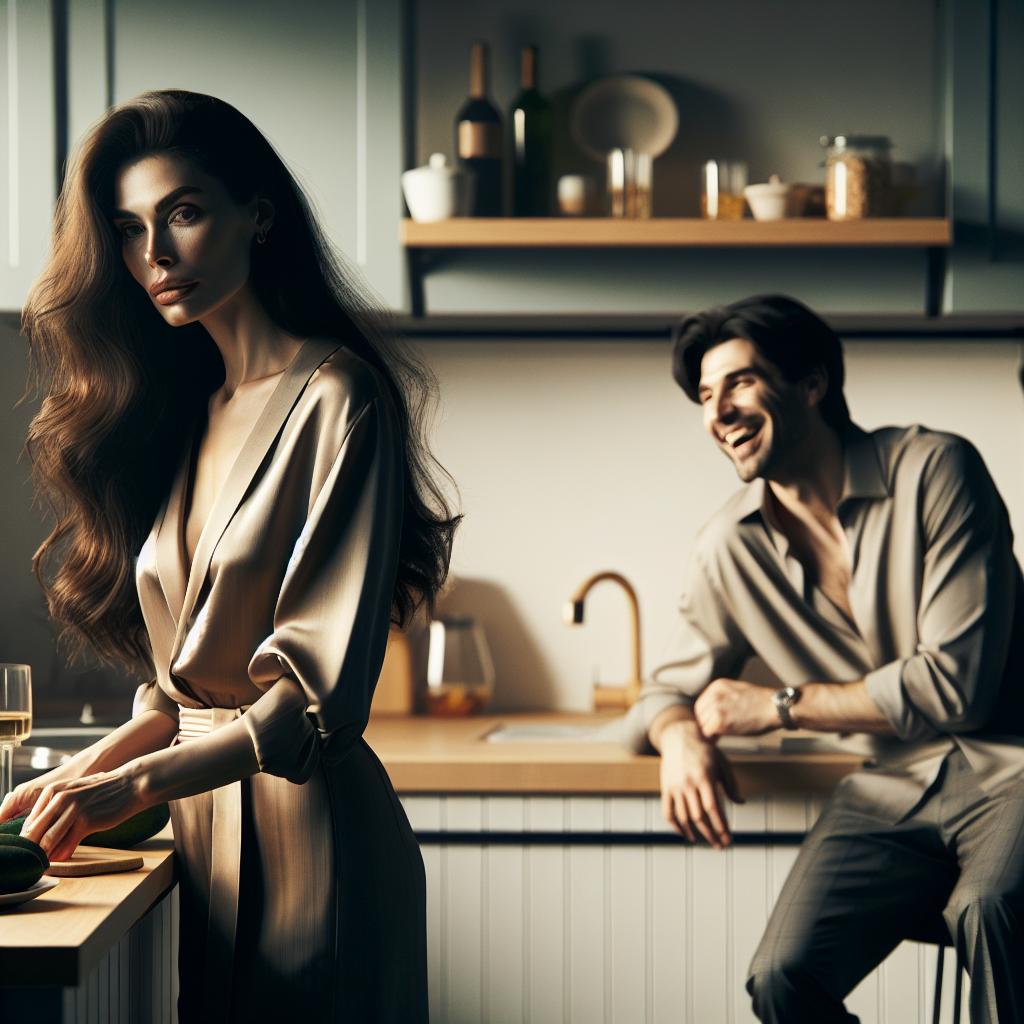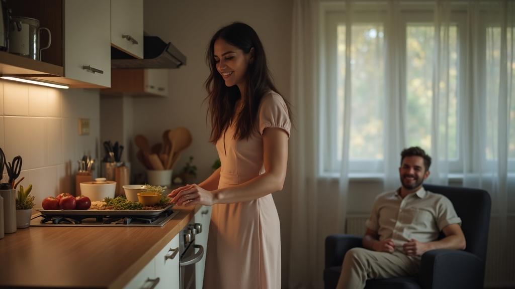 Александра, чувствуя, что семейная гармония рушится, решила попробовать всё исправить. Она устроила семейный ужин: достала любимую скатерть Григория, приготовила его любимые блюда — курицу с картошкой и шоколадный торт. Пока она готовила, в голове звучали тревожные мысли: «А вдруг это не поможет? А вдруг он уже не хочет мира?»
