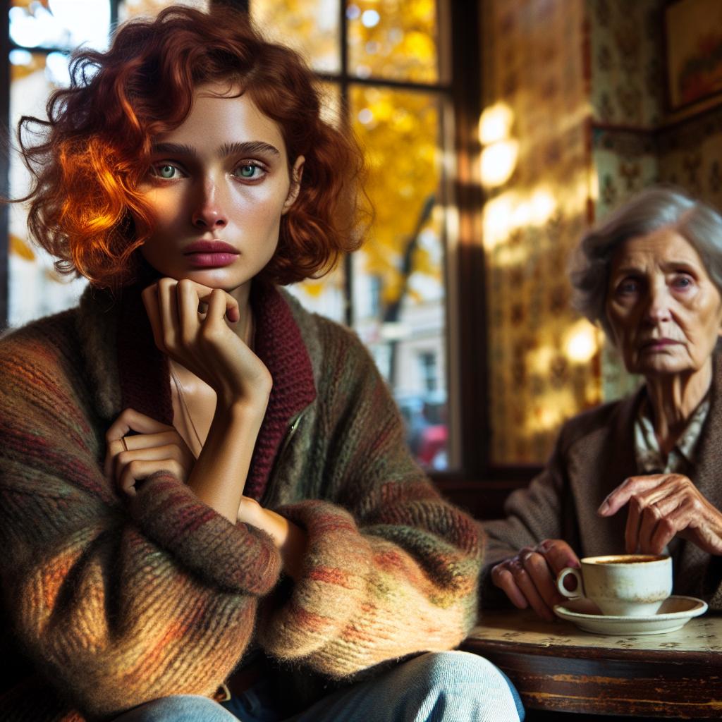 Осенний день выдался на удивление тёплым и солнечным. Золотистые лучи пробивались сквозь пожелтевшую листву деревьев, создавая причудливую игру света и тени на асфальте. Маргарита сидела за столиком в кафе, а напротив неё недовольная её вторая мама Людмила Григорьевна. Её рыжие кудряшки развевались от сквозняка, а изумрудные глаза задумчиво смотрели вдаль.