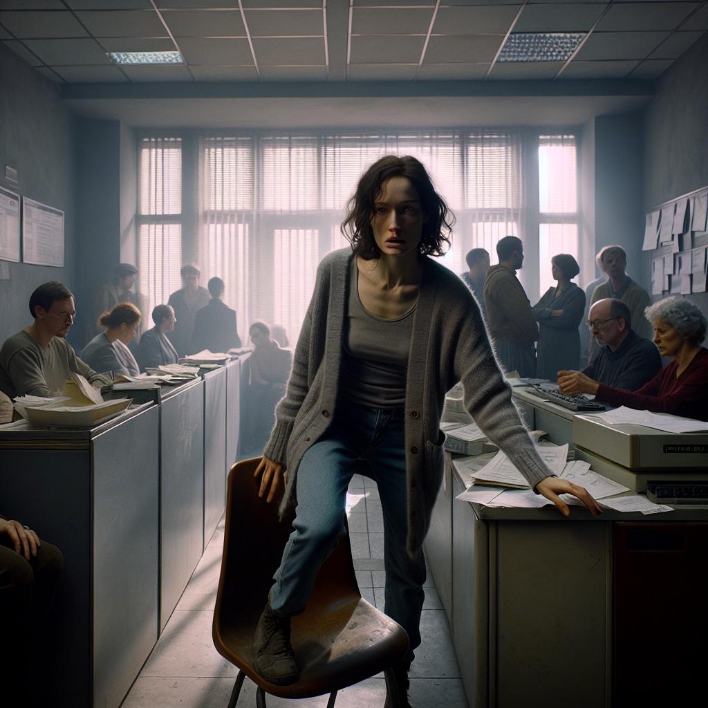 Вика прошла в кабинет — небольшой, с серой плиткой на полу и облупленным плинтусом у стены. На столе — кипа бумаг, монитор с табличкой «Пожалуйста, не опирайтесь».