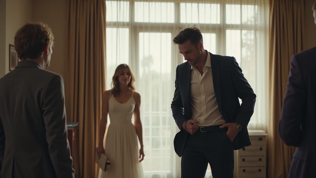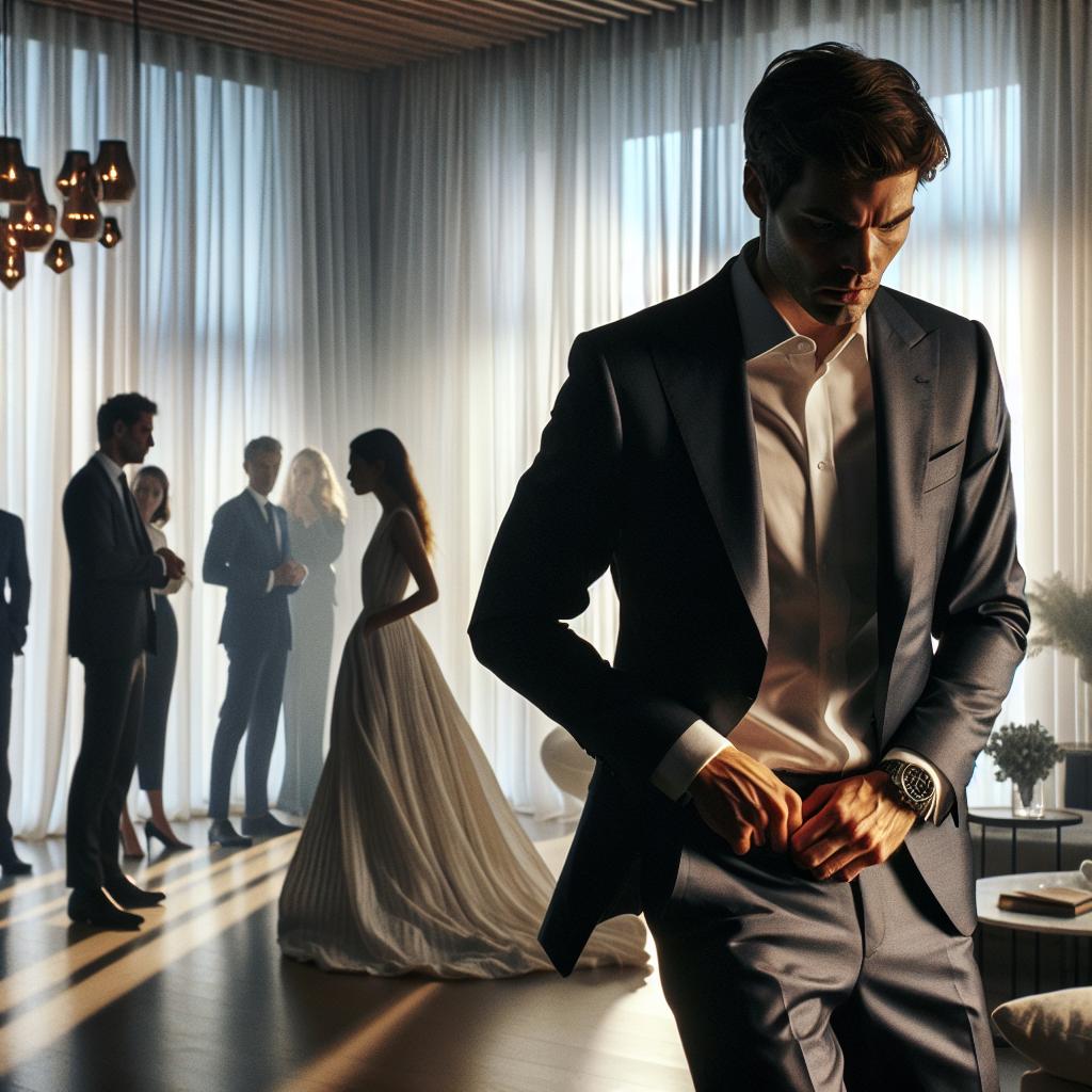 И вот настал заветный день. Гости собираются перед районным ЗАГСом, следом подъезжают молодожены. До начала церемонии остается каких-то считанных полчаса, когда жених начинает в панике шарить по карманам.