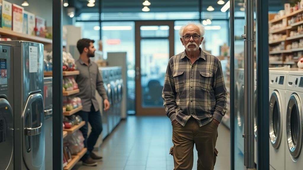 Наконец кто-то вышел, и усатый мужичок в круглых очках, одетый в клетчатую рубашку, которую он заправлял в безразмерные брюки, проник в магазин.