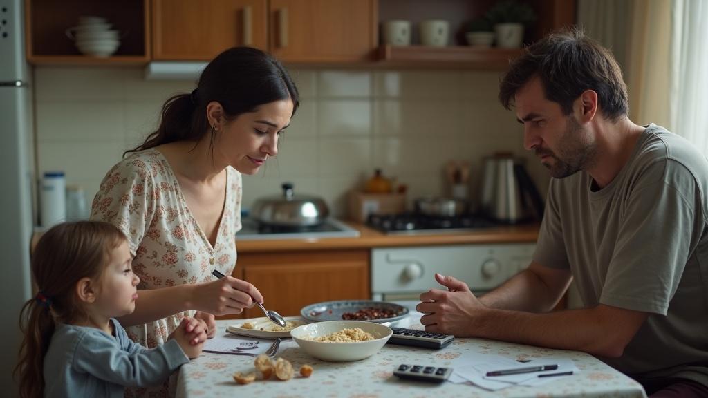 Марина мешала кашу дочке, а Павел сидел напротив с калькулятором и бумажками. Опять эти расчеты, опять не сходится. Двухлетняя Настенька капризничала — каша остыла, а мама всё отвлекается на папу.