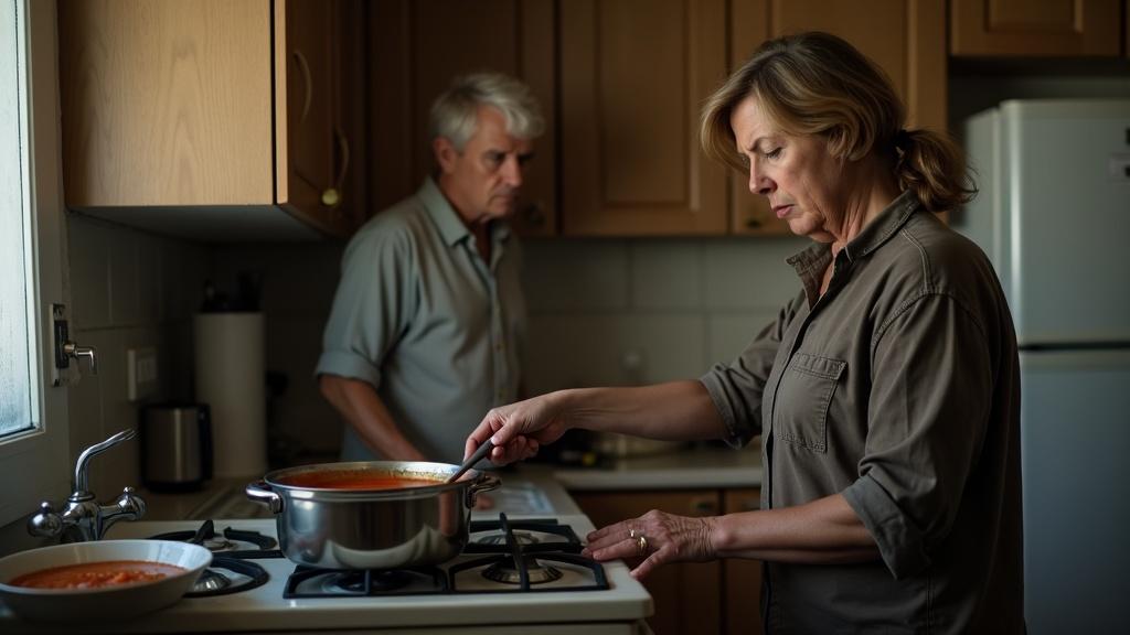 Тишина повисла в воздухе. Павел стоял у окна, тяжело дыша. Лариса сидела за столом, глядя в тарелку.