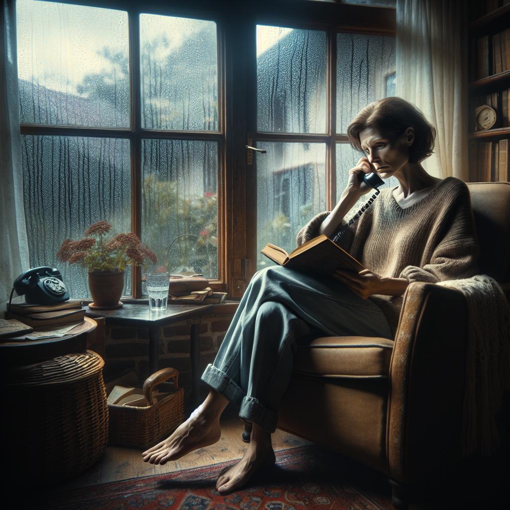Марина сидела в своём любимом кресле, перелистывая томик Бунина. За окном моросил октябрьский дождь, и капли стекали по стеклу, размывая мир до неузнаваемости. В доме царила та особая тишина, которая приходит после долгих лет супружества — не гнетущая, а обволакивающая, как старый плед.
