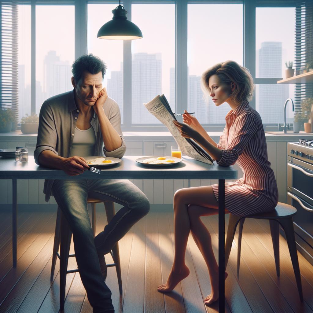 Ольга поставила тарелку с яичницей перед Виктором и села напротив. Он даже не поднял глаз от газеты. Вилка звякнула о фарфор — единственный звук в кухне, где когда-то смеялись и планировали будущее.