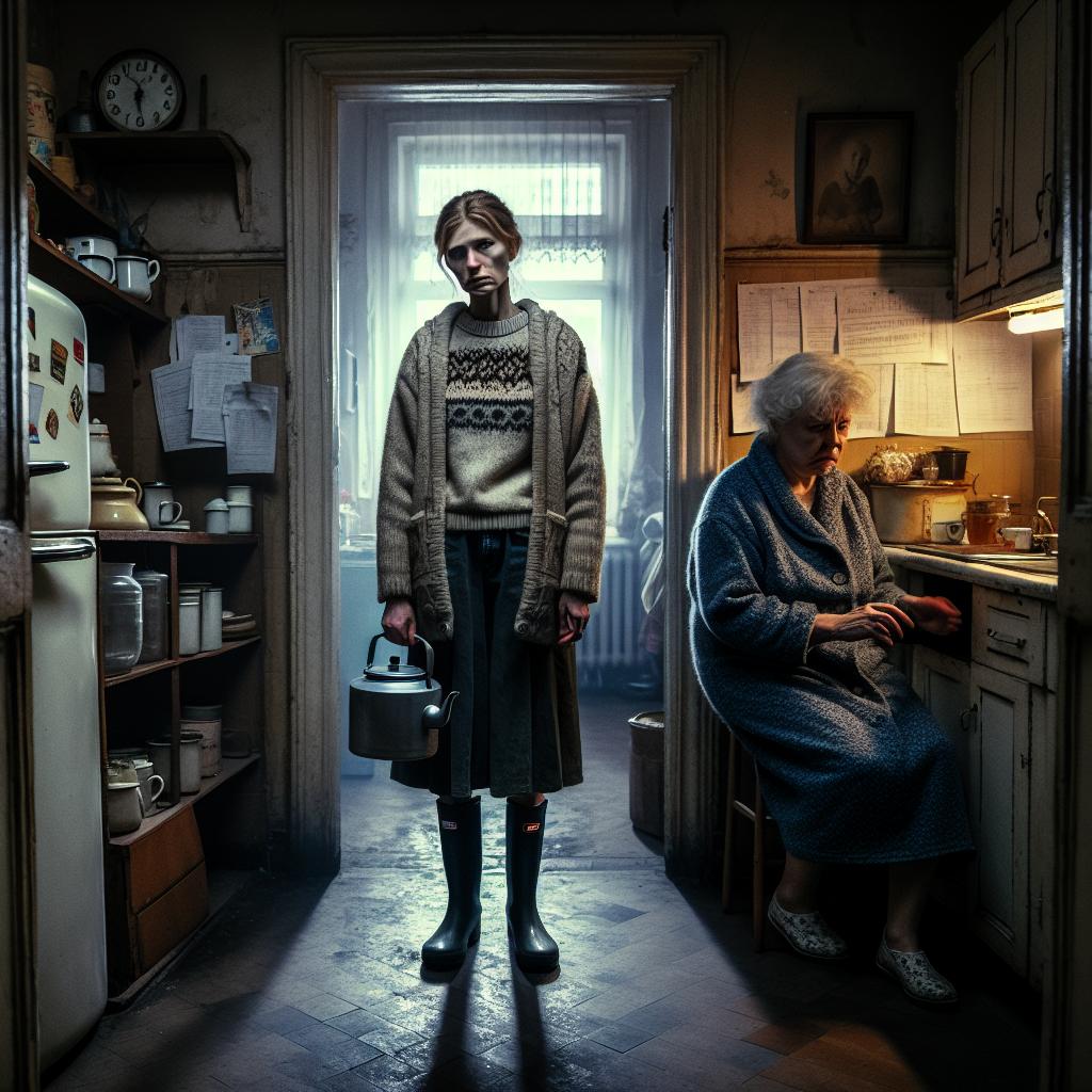 Кухня. Утро. Мать стоит у плиты, помешивая кашу. Сева за столом листает газету. Обычная картина, повторяющаяся изо дня в день. Марина входит, чувствуя, как внутри неё что-то сжимается в тугой узел.