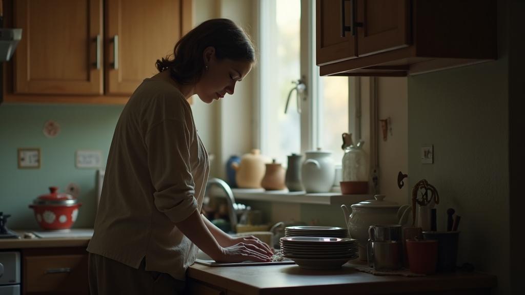 Марина вытирала посуду после ужина, когда Игорь вошёл на кухню с чашкой недопитого чая. Он поставил её в раковину и прислонился к столу.