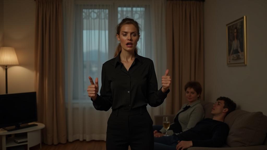 Мать, Клавдия Петровна, замерла с бокалом дорогого вина в руке. Григорий медленно отложил планшет, на котором как раз выбирал себе новые часы за счёт сестры. Его жена Эвелина перестала фотографировать интерьер для своего инстаграма.