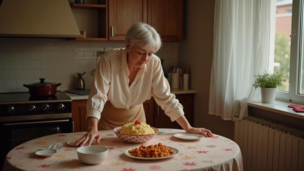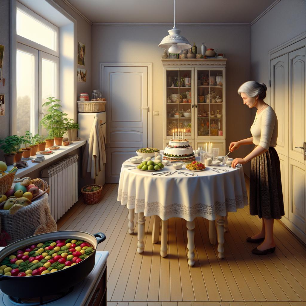 Ника уже повязала фартук, ловко нарезала зелень, подогрела курицу, подала хлеб, проверила свечи. Делала это не для галочки — было видно, что ей важно облегчить свекрови хлопоты.
