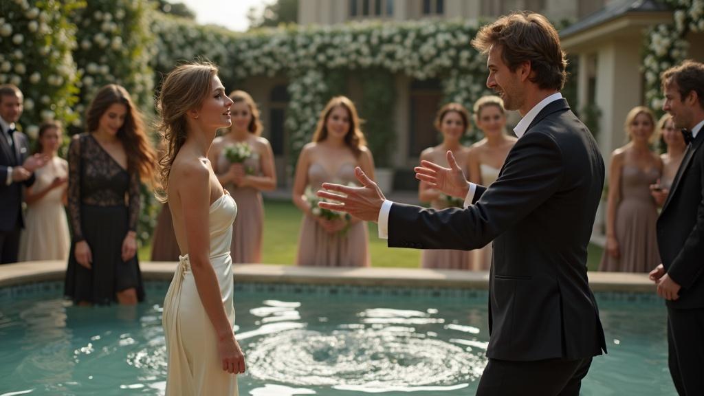 Во время ужина всё казалось идеальным. Нам тостовали, друзья смеялись, и я думала, что живу своей мечтой. А потом, во время танца, Андрей предложил «сделать что-то забавное для фотографий». Он потянул меня за руку к фонтану, и я подумала, что он хочет романтический момент. Но случилось то, чего я никогда не забуду.