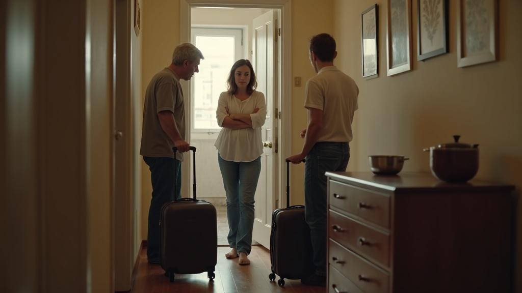 Через час Валентина Петровна стояла у двери с чемоданами. Лицо её было непроницаемым.